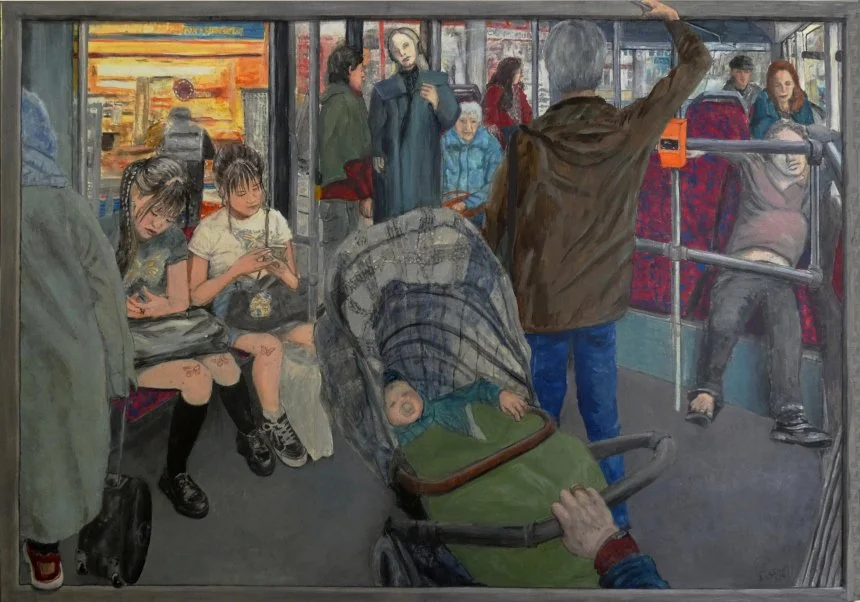 Die Bilder sollen Geschichten erzählen und gleichzeitig spielen sie mit der Wahrnehmung und der Illusion, so sind sie zwar gerahmt, die Rahmen sind aber Teil der Malerei.