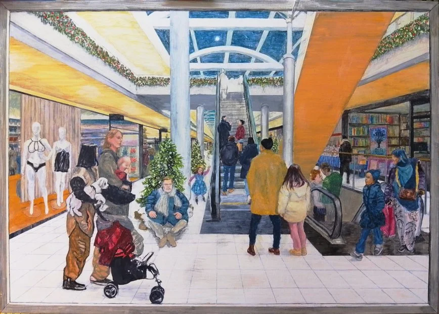 Die Bilder sollen Geschichten erzählen und gleichzeitig spielen sie mit der Wahrnehmung und der Illusion, so sind sie zwar gerahmt, die Rahmen sind aber Teil der Malerei.